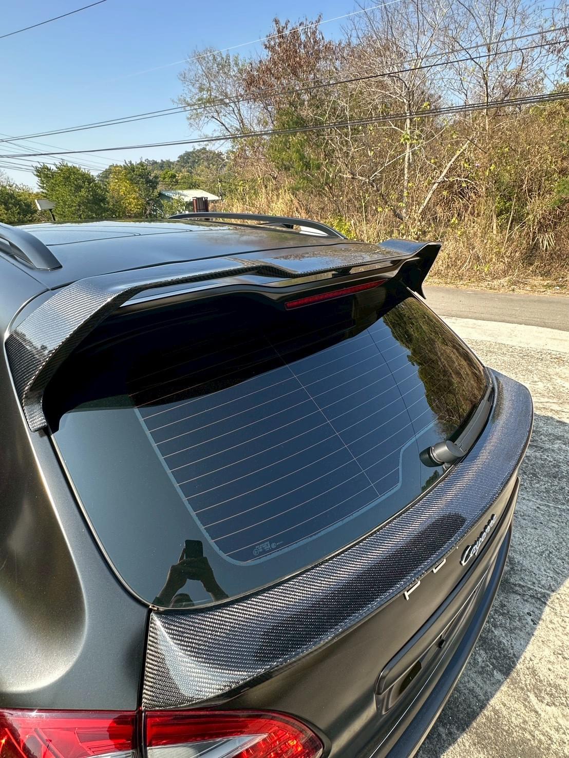 新款頭燈與雙層尾翼: 958.1 原廠頭燈較為圓潤,換上新款(通常是四點式矩陣風格)後,科技感直逼現行款。雙層尾翼則強化了車尾的層次感,消除了 SUV 原本沉重的背影。